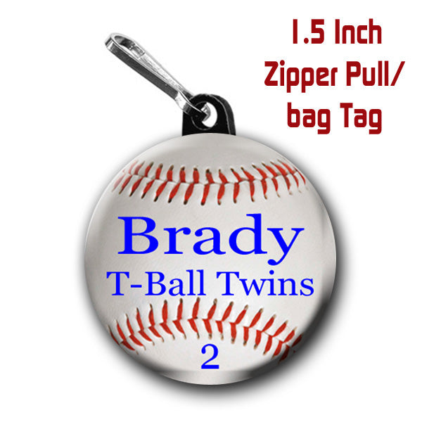 Baseball Zipper Pull, Sports Zipper Pull, Baseball, Personalized Zipper Pull, Collectible