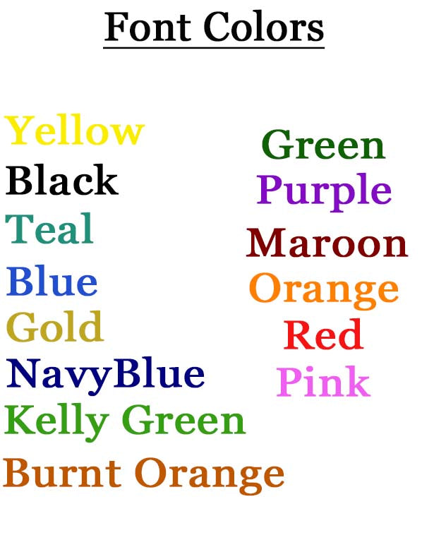 - >Personalized Baseball Zipper pull/bag Tags featuring the Name, Number, Team Name, and font color of your choice >Spark up that boring old zipper on your jacket, sweater, school bag, back pack, gym bag, equipment bag, purse, golf bag, or many other places >Charm is 1.5 inches in diameter and the graphics are crimped sealed between a metal button and a clear piece of mylar to protect against dirt and moisture >Zipper pull total length is 2.5 inches. > As with all small objects, zipper pull charms are not recommended for children under the age of 3. > Contact me if you have your own graphics, logo, etc. that your are wanting to use. Buy for one or for the entire team. Shipping is cheaper the more you buy.> The available font colors are shown. You will need to input the color name when ordering.