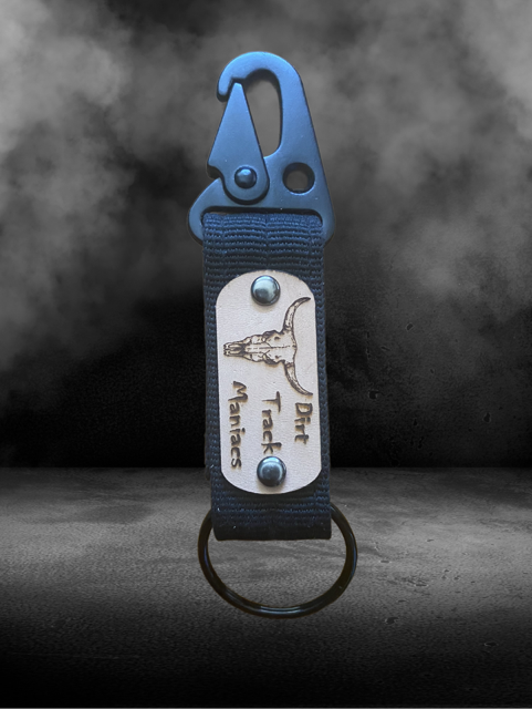 > Belt loop Key Ring featuring the phrase, Dirt Track Maniacs and Longhorn