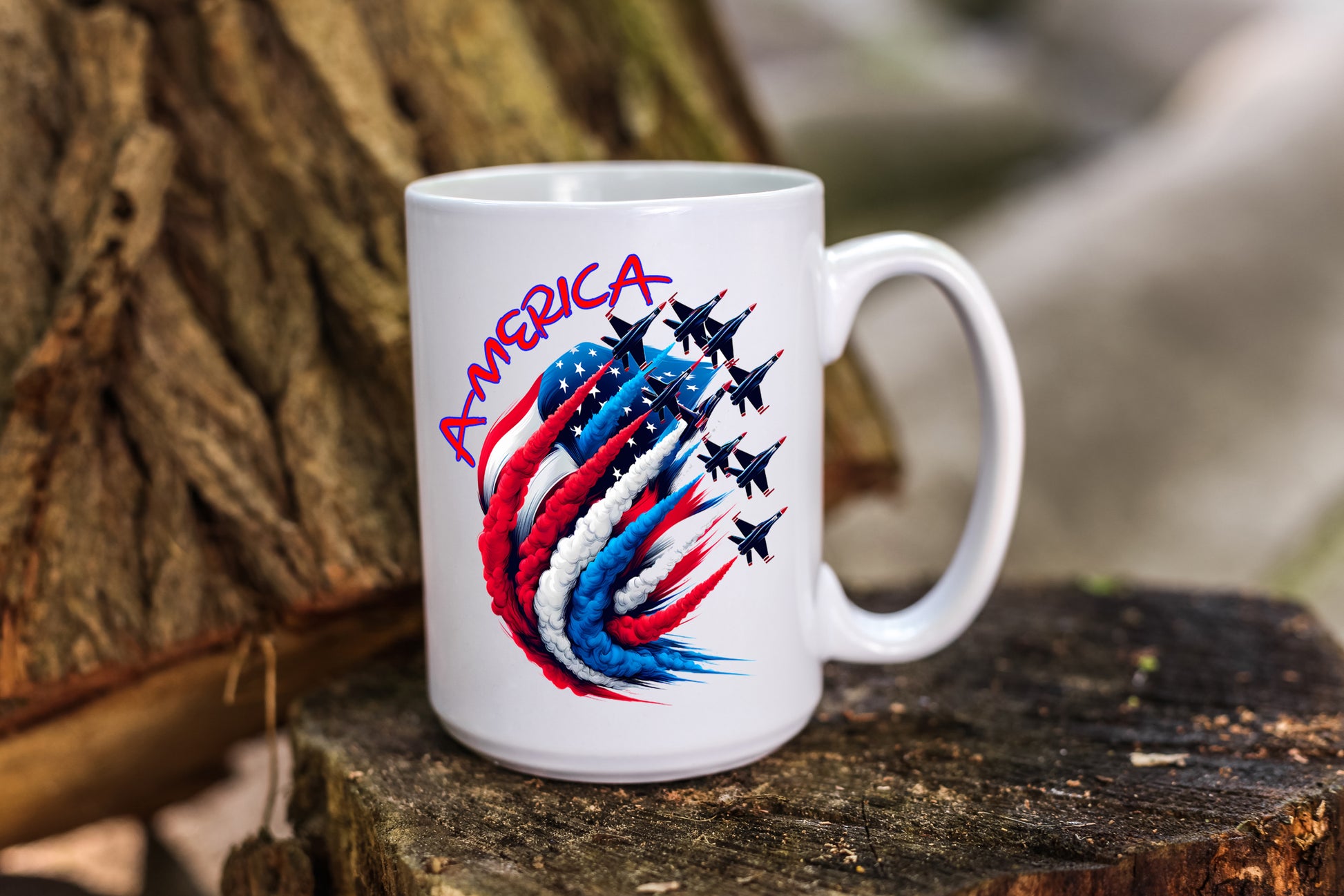 Coffee Mug Celebrating America with Patriotic Jets