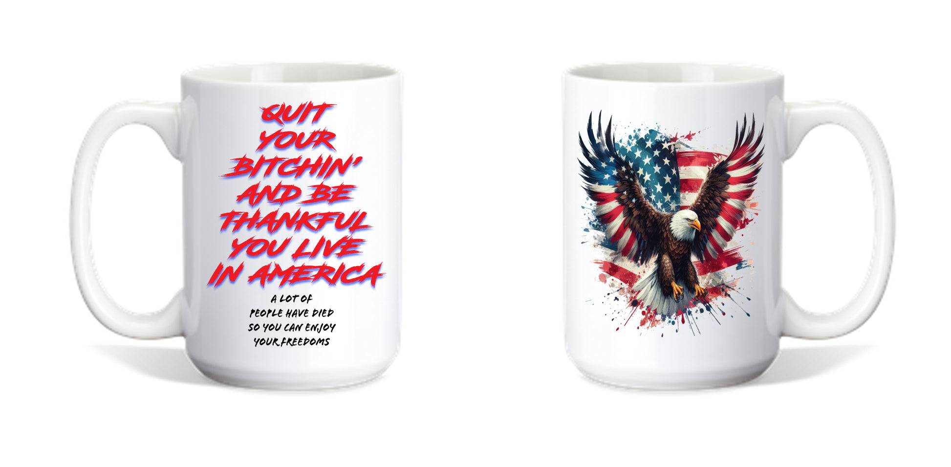 Coffee Mug Featuring a Patriotic Bald Eagle And a Quote