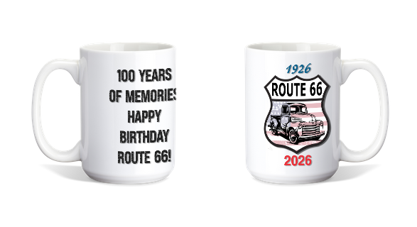 > Coffee Mug featuring a Route 66 Design celebrating 100 years.